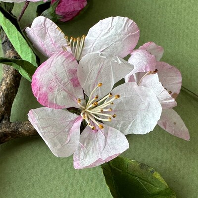 Мы с вами с нуля сделаем реалистичную цветущую веточку из бумаги c раскрытыми цветами и бутонами.