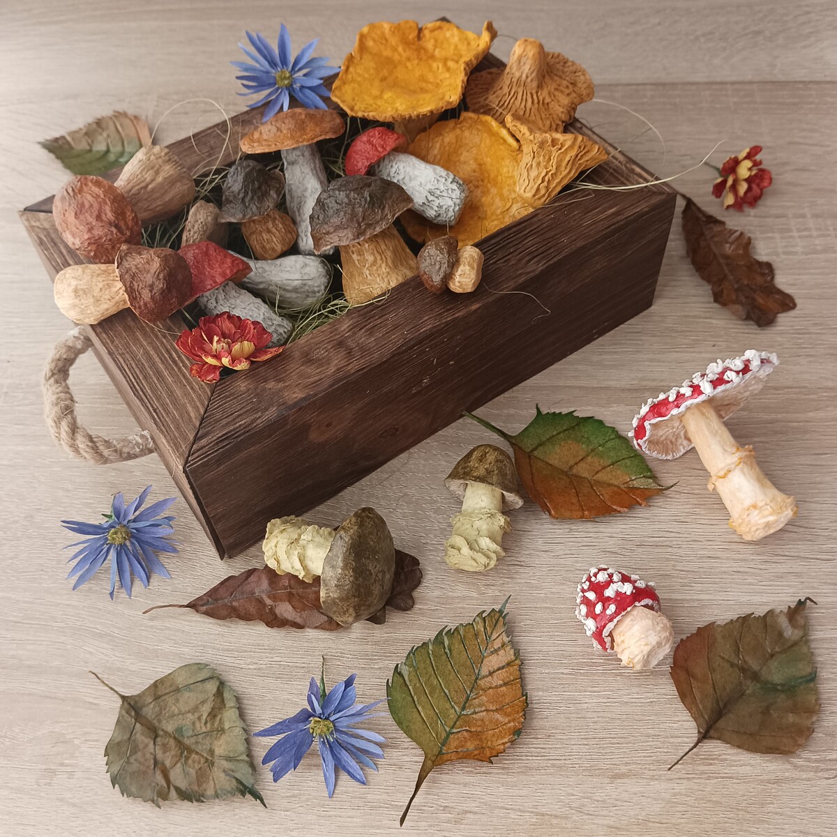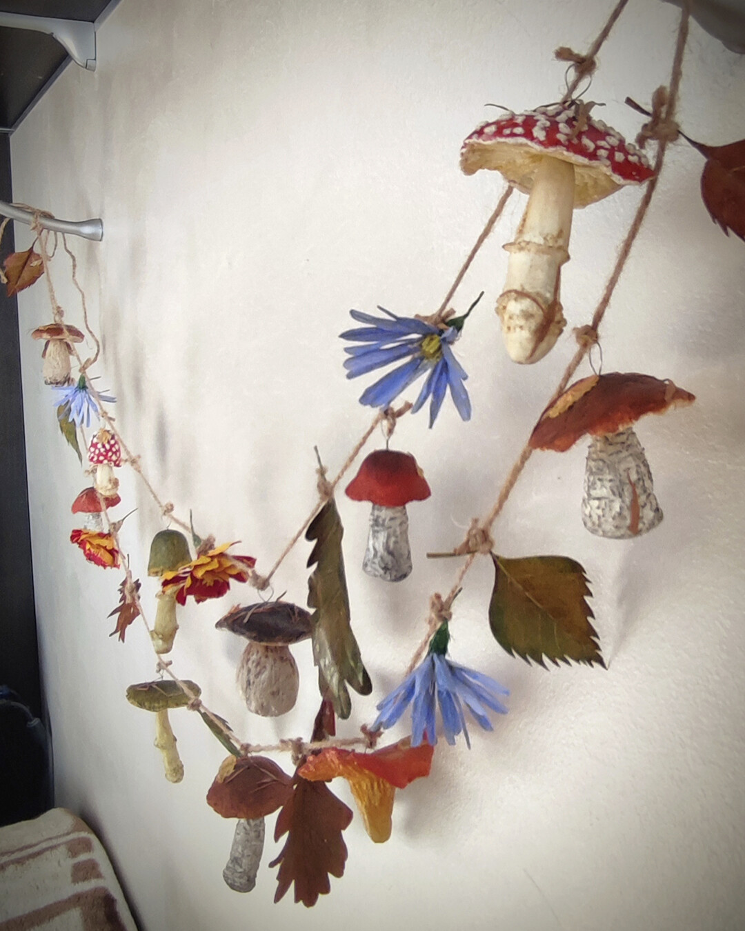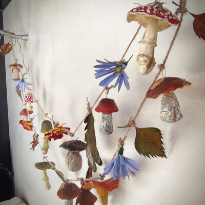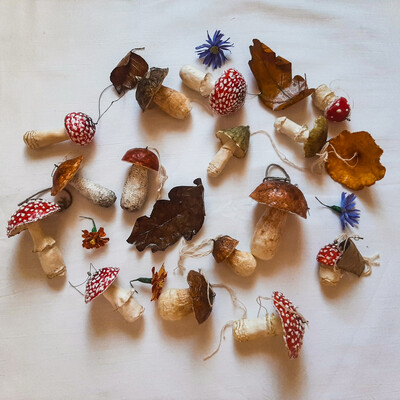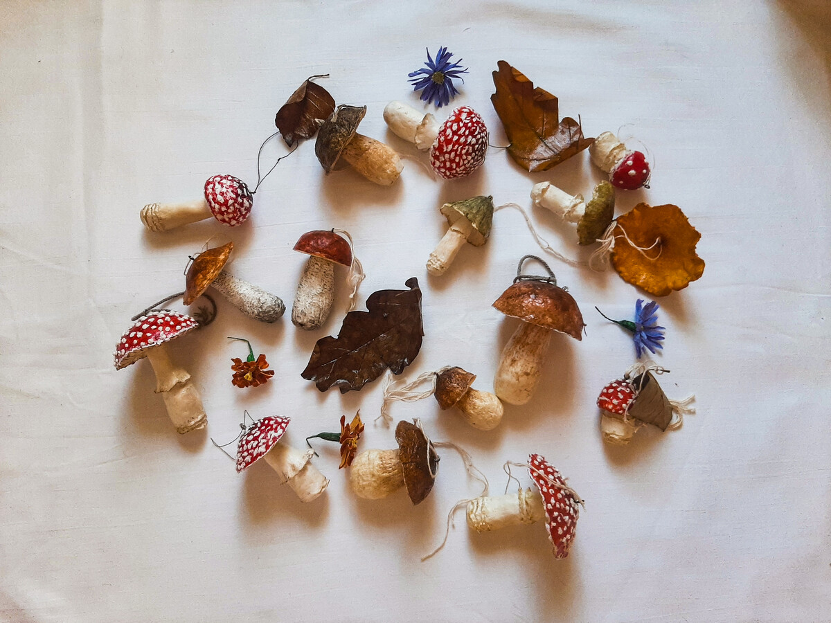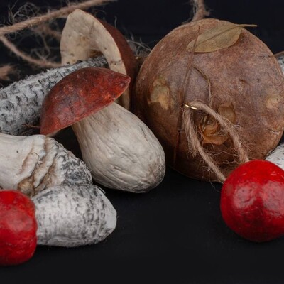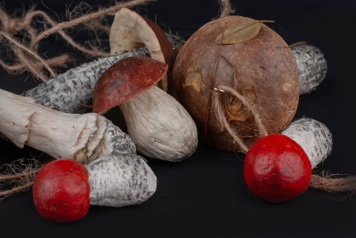 Для грибов: клей пва строительно-универсальный, туалетная бумага, наждачная бумага для обработки массы (либо машинка для маникюра или гравер), крючки, веревка.