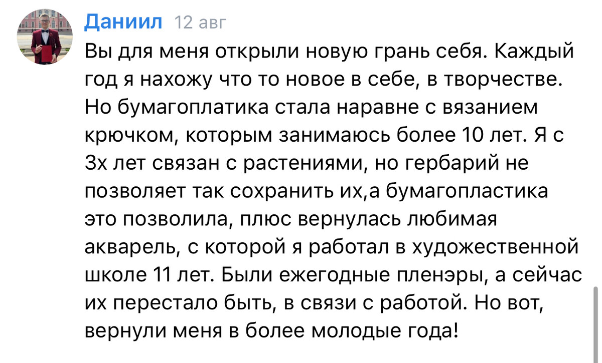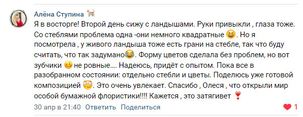 Мастер-классы подходит всем, кто не боится мелкой работы и хочет получить новые навыки в работе с бумагой. На курсах мы делаем тычинки, расписываем нежные лепестки, работаем пинцетом, и конечно, если присутствует художественный навык и навык в хэндмейд работе, то это вам очень пригодится.