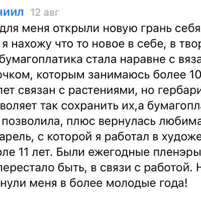 Я сделала работу в материале, которая состояла из бумажных трав и улиток. Сама для себя я не ожидала, что смогу почувствовать материл с которым работала.