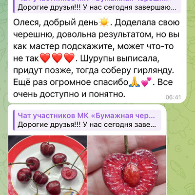 Включает в себя 16 уроков + видео по материалам. На мастер-классе мы сделаем гирлянду черешен из массы папье-маше, сделаем реалистичные бумажные хвостики и создадим эффект мякоти и косточки в разрезанной черешне.