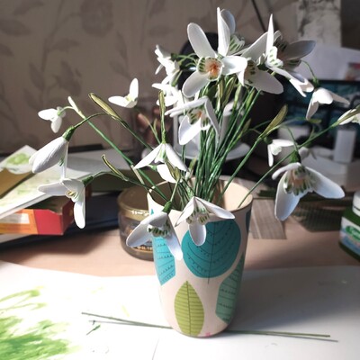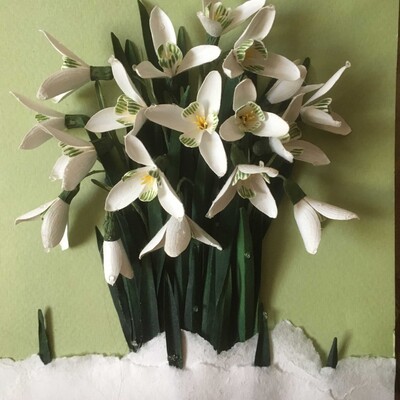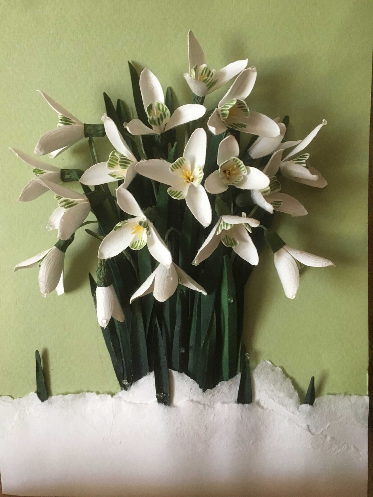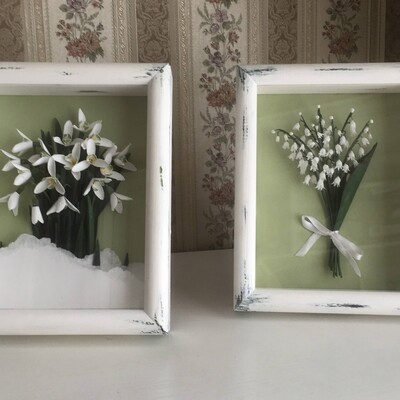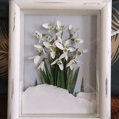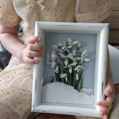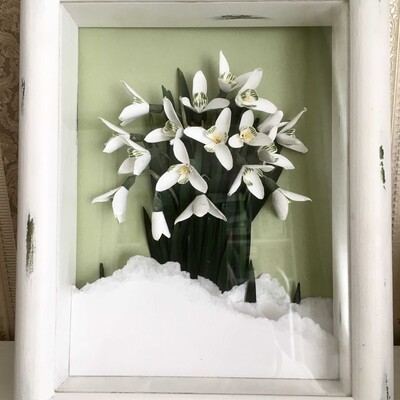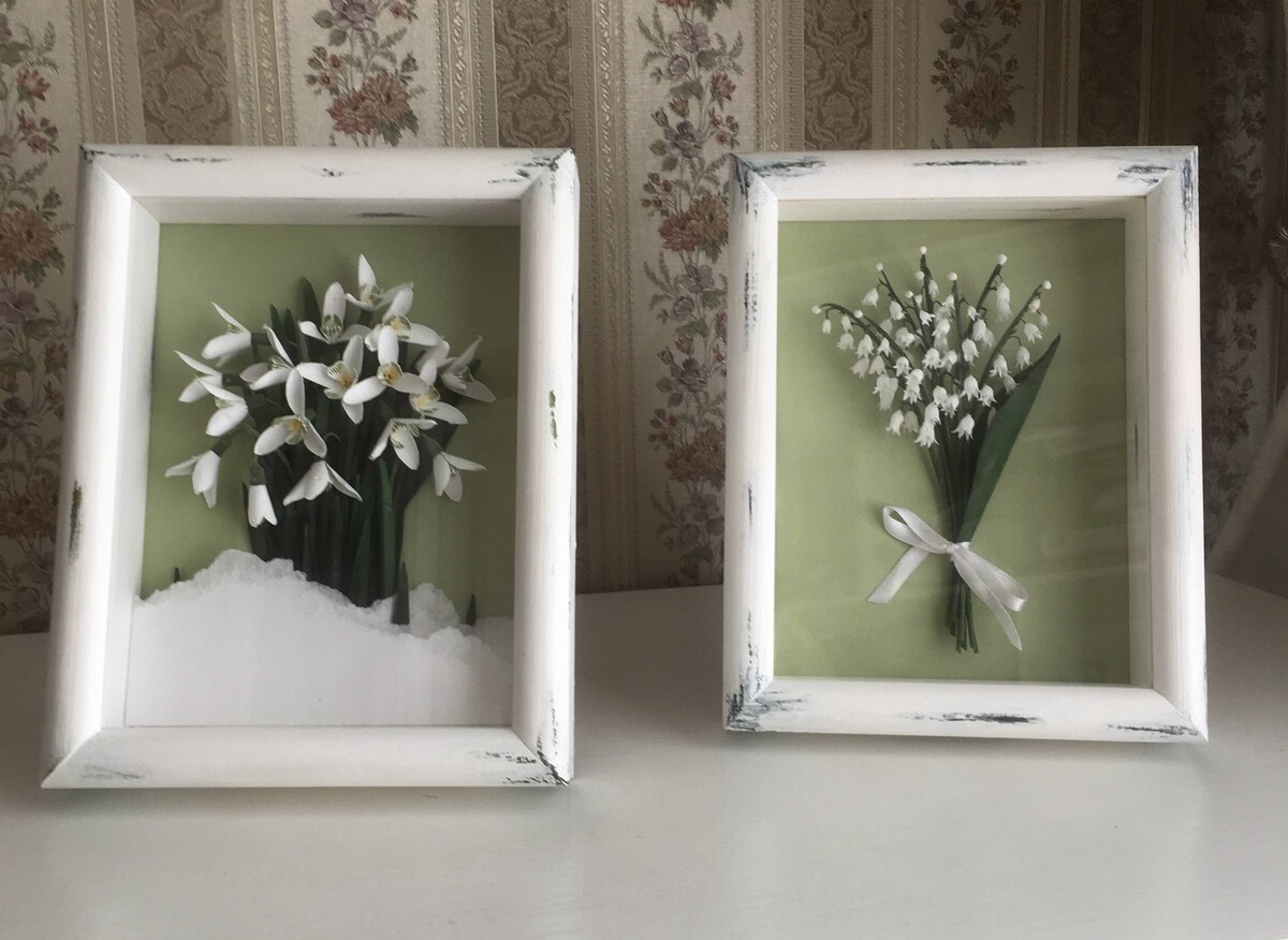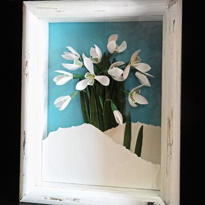 Бумажные подснежники можно использовать для открыток, картины или декора.