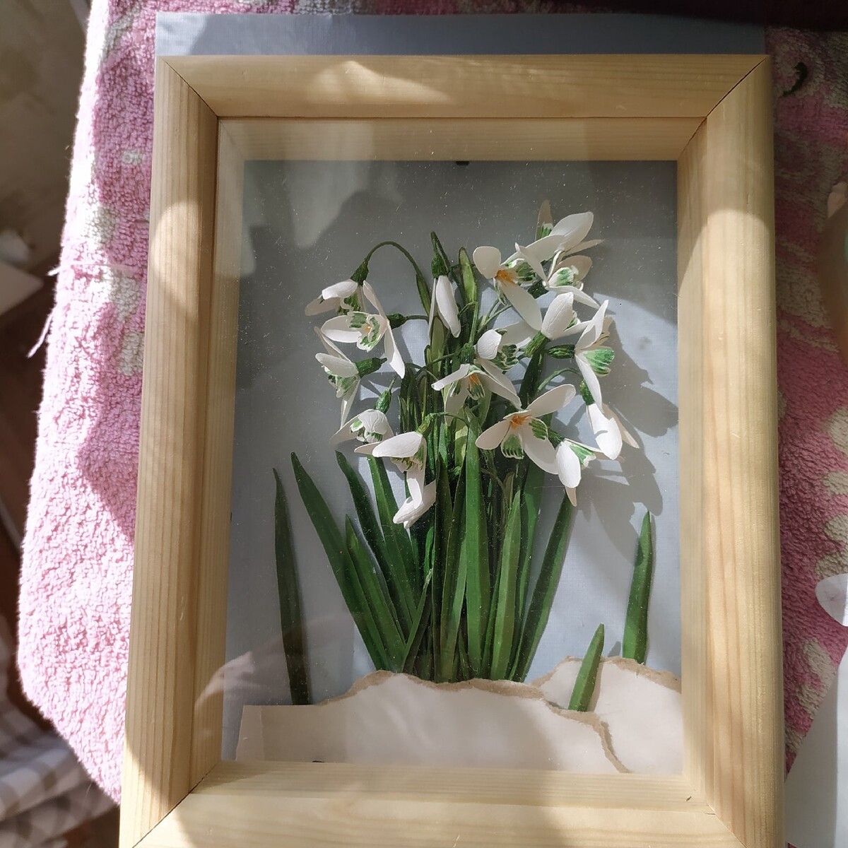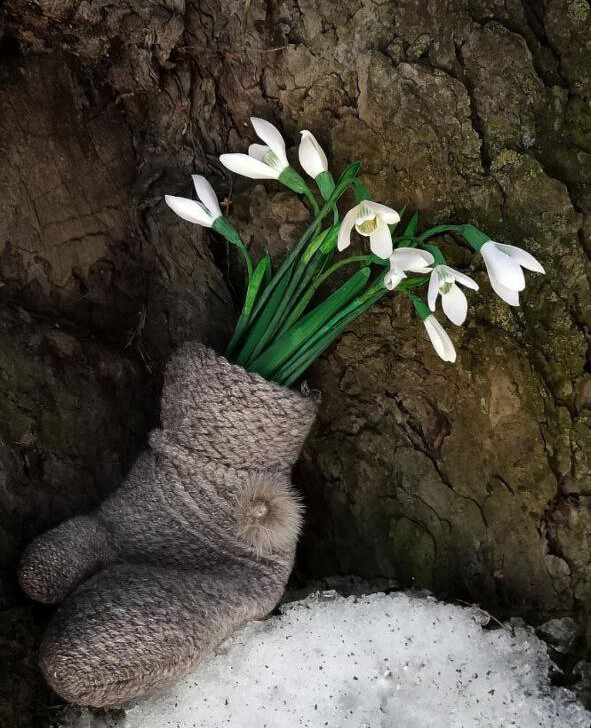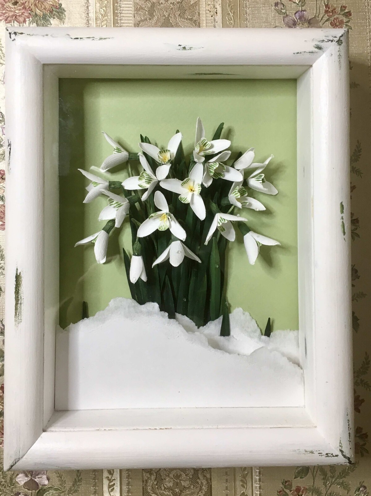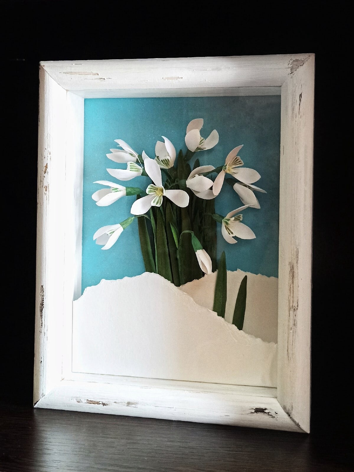 Бумажные подснежники можно использовать для открыток, картины или декора.