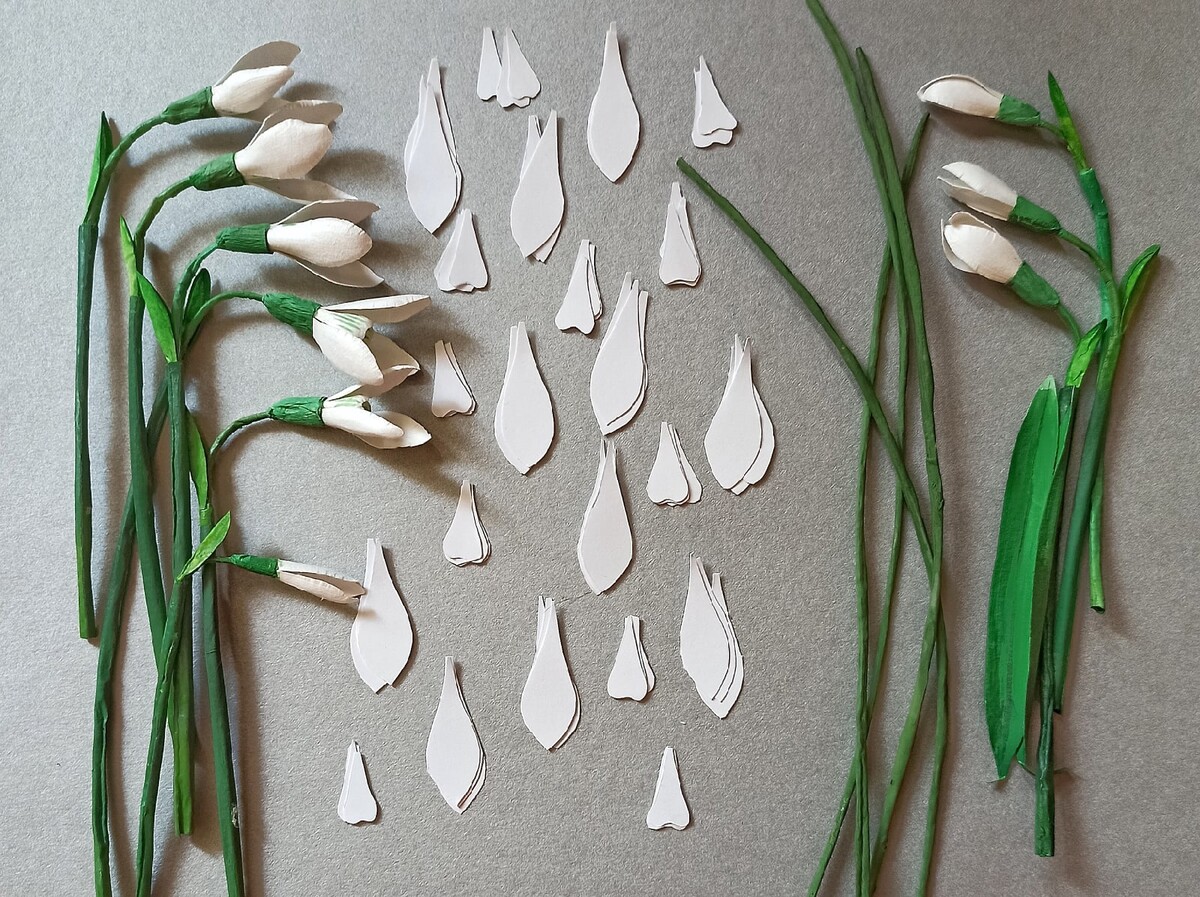 18 уроков, позволяющих из просмотй бумаги сделать реалистичные подснежники